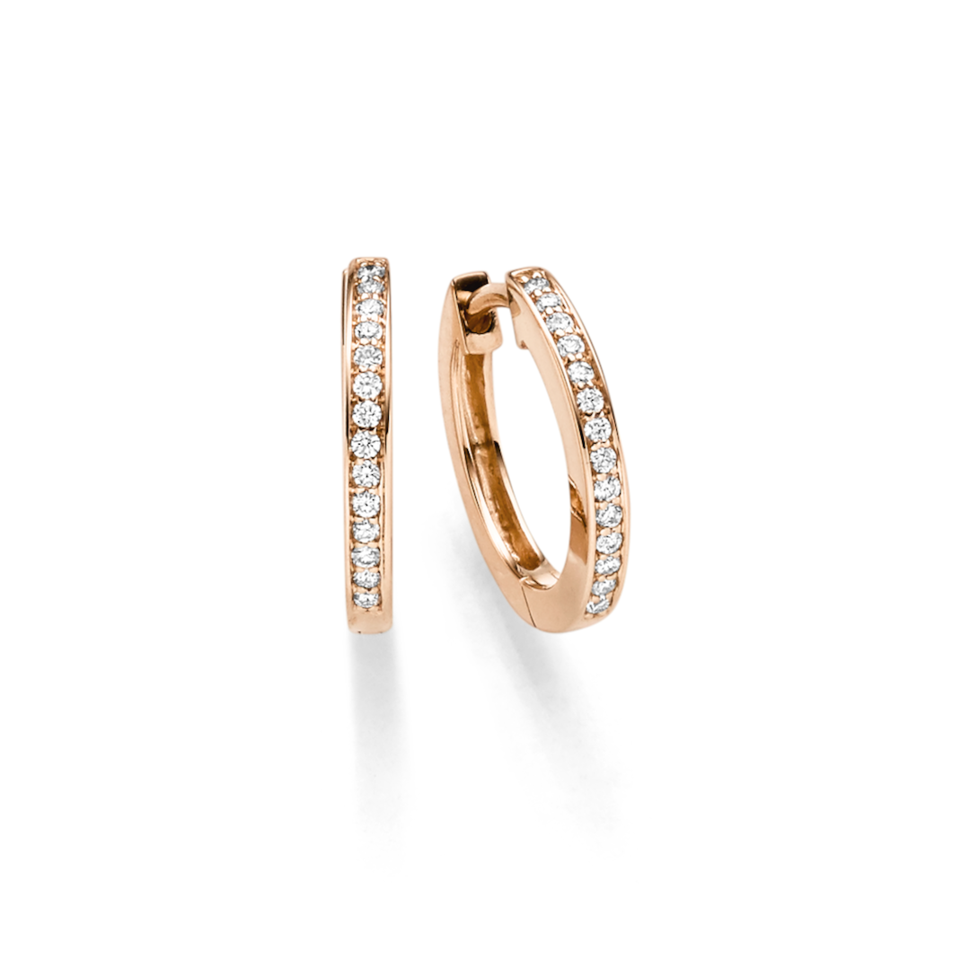Diese klassischen 14kt.Rotgold Creolen mit den Brillanten im Kanal gefasst, betonen Ihren Style.