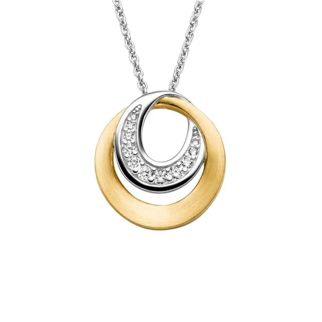 Für Furore am Dekolleté sorgt dieser 925-Sterlingsilber Halsschmuck mit dem vergoldeten Teil. Zirkonia-Steine veredeln diesen eleganten Anhänger. Der Verschluss lässt sich bei einer zweiten Öse einhängen, sodass „Frau“ die Kette verschieden lang tragen kann.