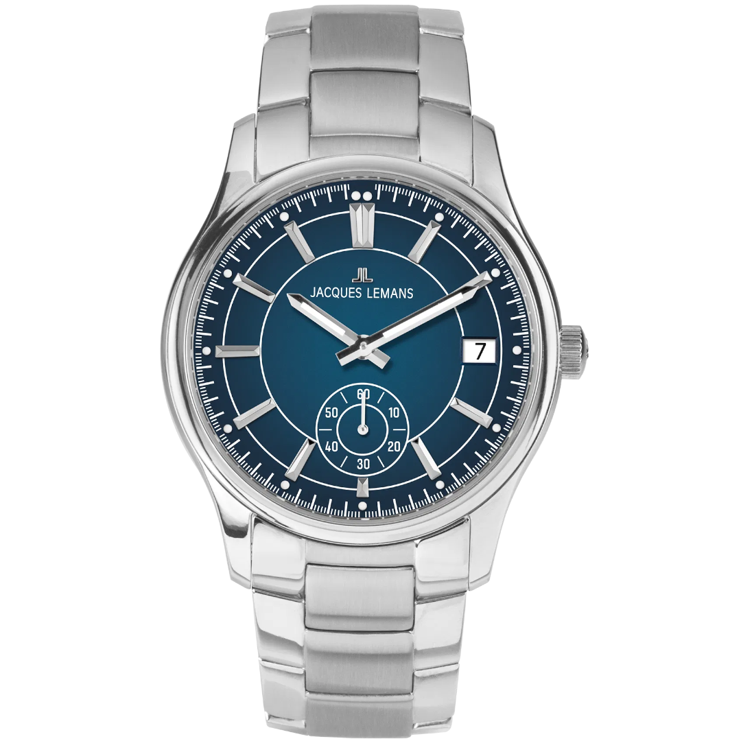 Dieser Zeitmesser ist mehr als eine Uhr. Die interessante Armbanduhr 1-2197G von Jacques Lemans mit dem exzentrischen Sekundenzeiger, ist ein toller Blickfang am Handgelenk. Das beeindruckende Ziffernblatt mit Strichindexen wird von einer Datumanzeige ergänzt. Edelstahluhrband mit Faltschließe sowie ein Edelstahlgehäuse machen die stylisch designte Armbanduhr mit der kleinen Sekunde perfekt.